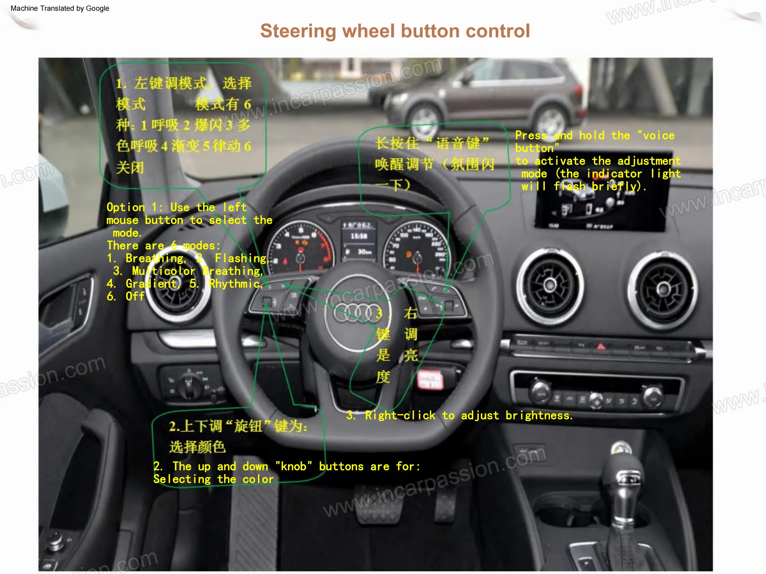 Unlike basic RGB strips, Active Dynamic Lighting creates a "chasing" visual sequence during startup or temperature changes, mirroring the high-tech interface of Audi’s latest luxury lineup. Combining this with the Turbine Vents transforms the 8V cockpit from a dated space into a high-end, modern tech suite.