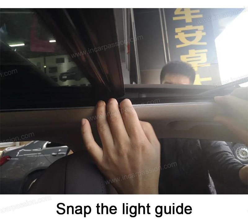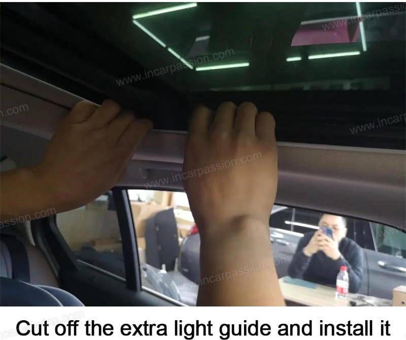 Install the LED Light Strip: Carefully peel the adhesive backing from the LED light strip and install it into its designated mounting position, typically along the perimeter of the sunroof opening, just inside the frame.