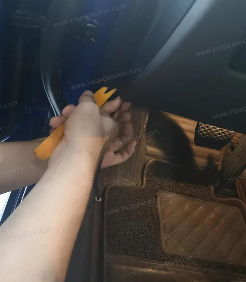 You may need to gently pry back some interior trim pieces using your plastic trim removal tools to tuck the wire neatly and invisibly. Avoid forcing anything to prevent damage.