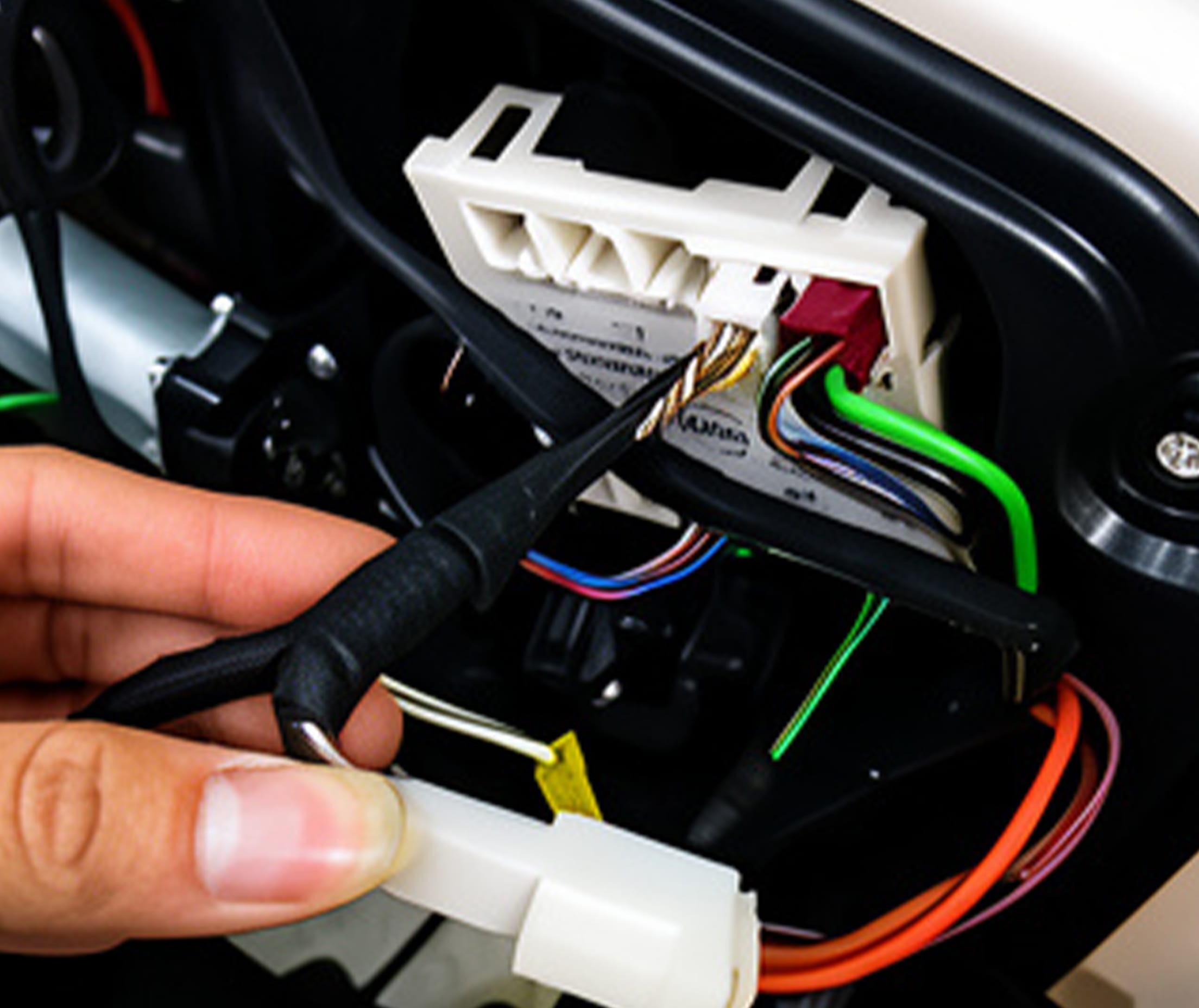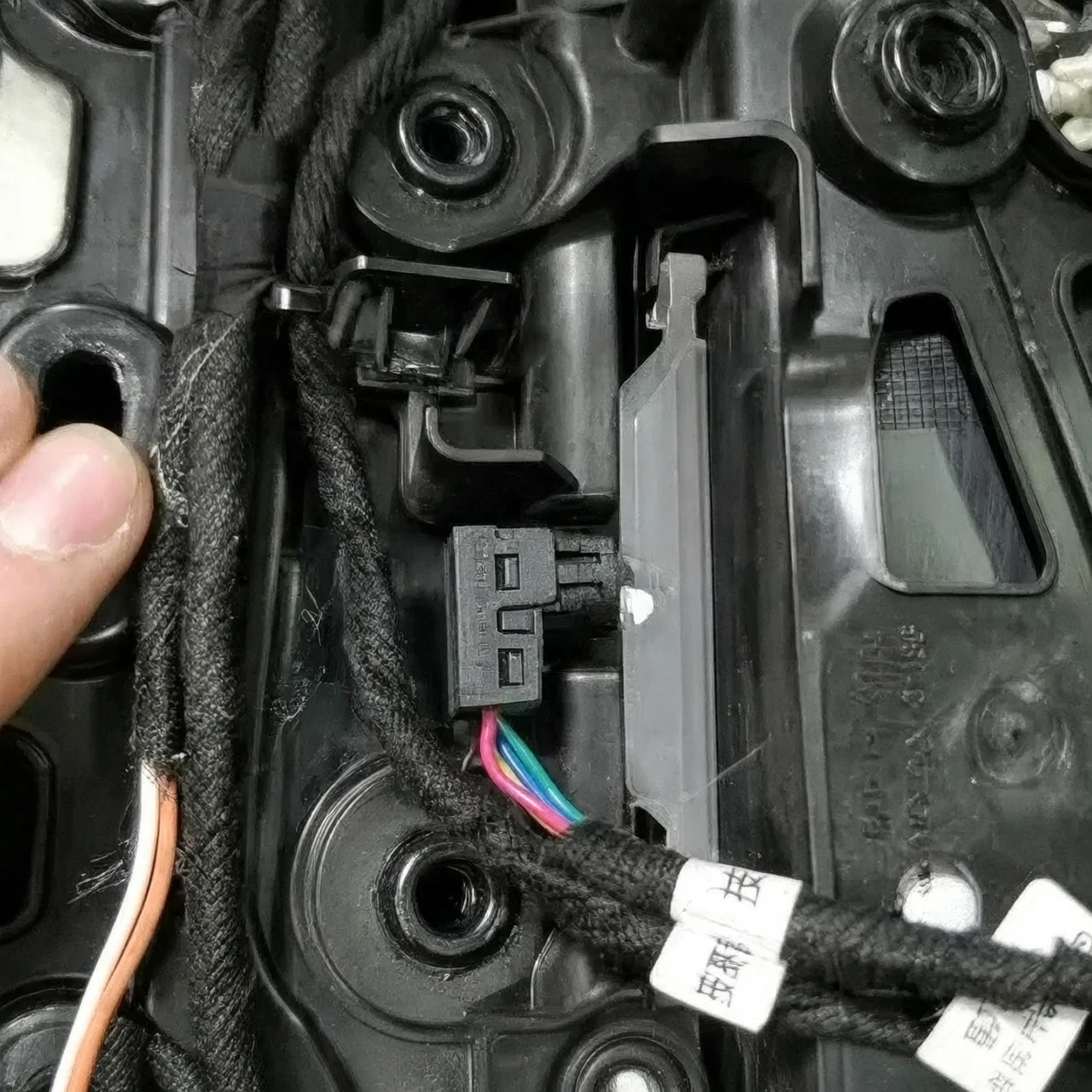 3. Find the white socket with CAN cable on door panel, plug our CAN hardness to the door panel socket.
