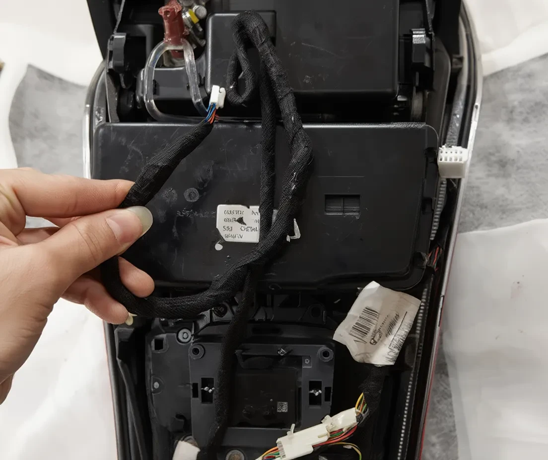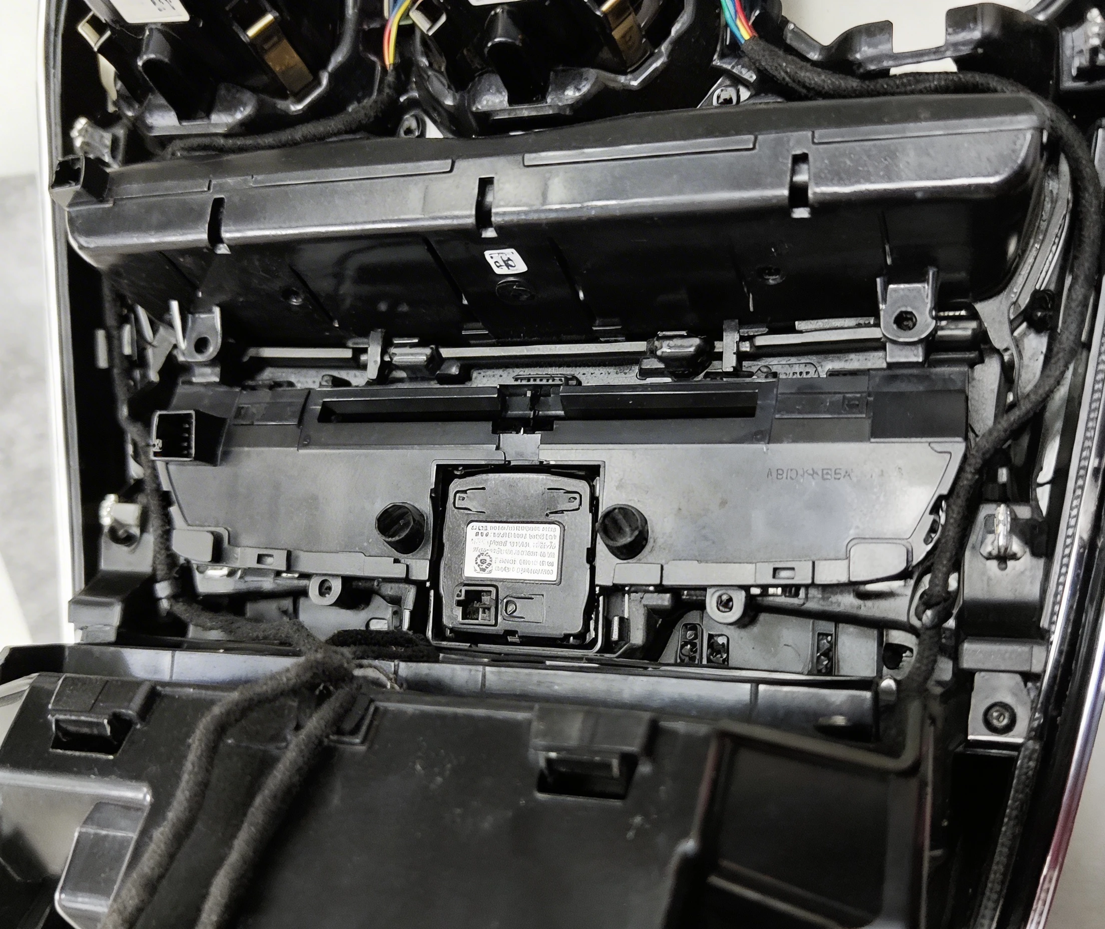 4. Remove A/C panel on center console, Pull out original hardness with led beam, replace it with our hardness