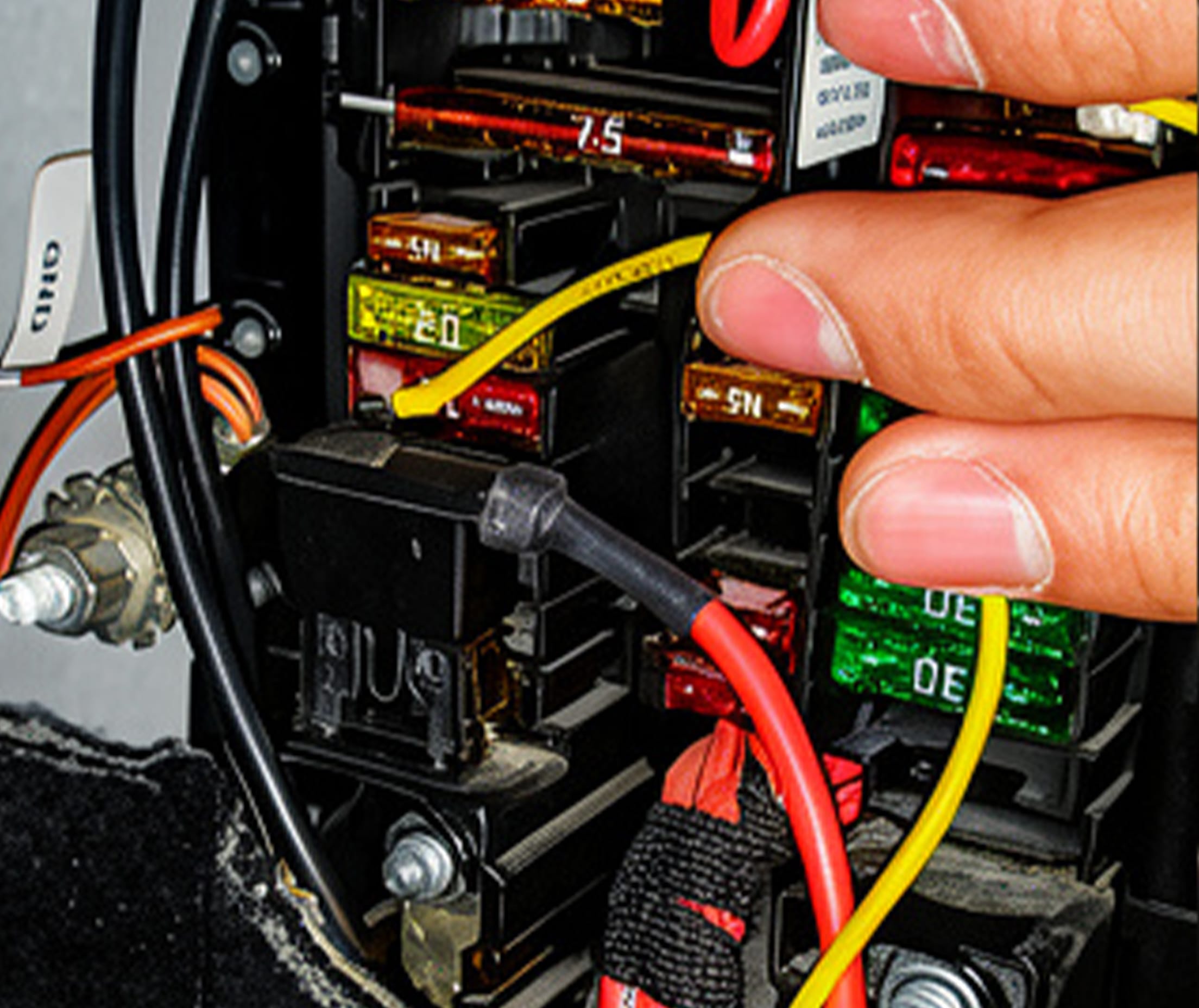 8. Connect the power cable and GND to the fuse box on passenger side