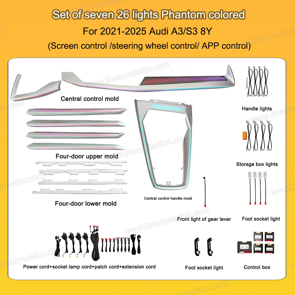 With air vent light, center console light(saddle light), dash light specific for this A3/S3 8Y for option to create more sophisticated interior lighting for your car