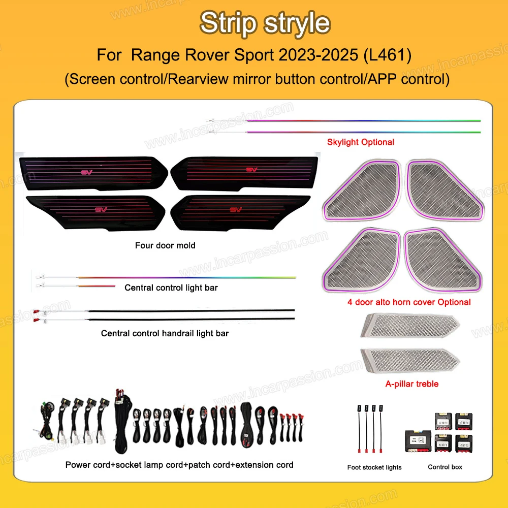 A: For Range Rover Sport 2023–2025 (L461), the ambient lighting can be controlled by app or buttons by default.